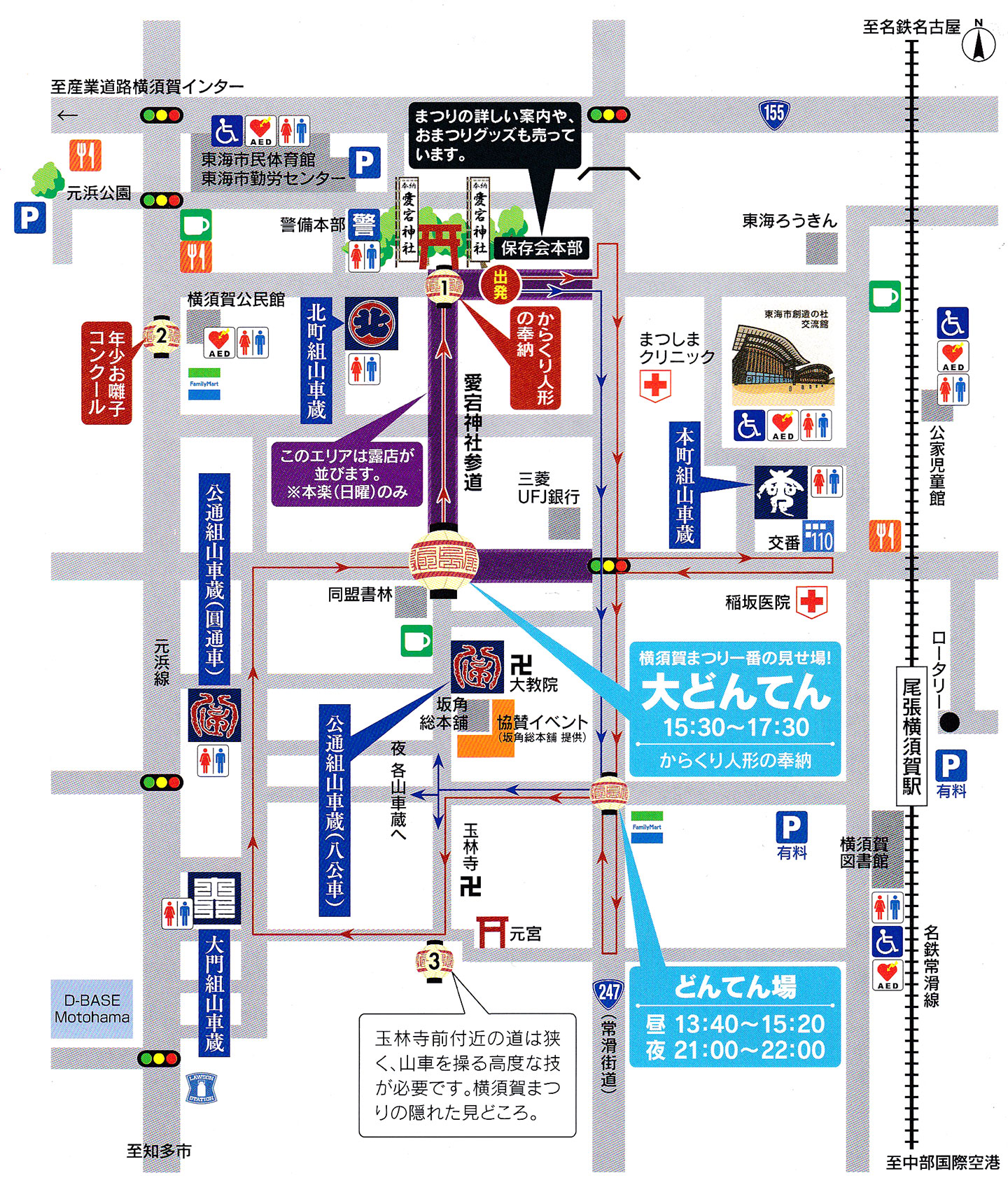 | 12:00 | 愛宕神社出番車北町組より曳き出し | |