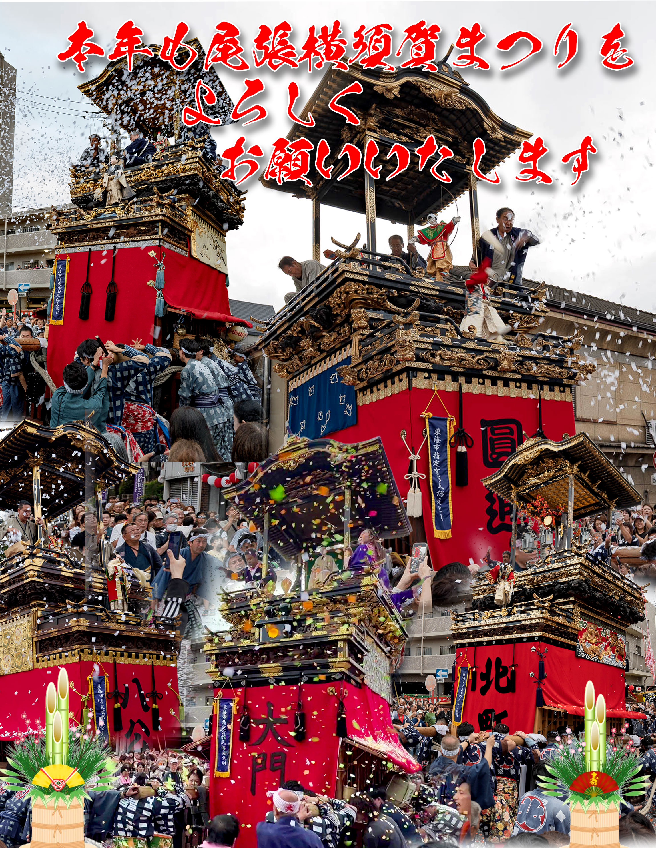 尾張横須賀まつりから山車5輌が曳き揃えられからくり人形とどんてんが披露されました。